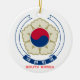 Adicione um pouco de Coreia do Sul a sua celebração do Natal ou sempre que você quer decorar com um tema de Coreia do Sul, a este ornamento é cerâmico e tem a brasão de Coreia do Sul em um lado e na bandeira coreana sul no outro. Isto é limitado para causar a conversação e transformar-se uma herança de família. Para mais artigos deste tipo, visita: www.zazzle.com/Azorean. 크리스마스축하에대한민국의작은비트를추가또는이장식세라믹이며다른대한민국의한쪽과대한민국깃발에팔의외투를가지고한국테마로장식하고자할때마다. 이대화고가족가보가될수밖에없다.