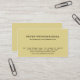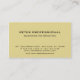 Este elegante cartão de visita mostra suas informações de uma forma limpa e profissional usando uma fonte preta moderna em um fundo amarelo de areia. Este design é adequado para todos os fins. Os Cartões de visitas são uma ferramenta de marketing de excelente para os proprietários de empresas e pequenas empresas para promover seus serviços ou produtos em muitas áreas de atividade, como educação, consultoria, finanças, seguros, imóveis, saúde, beleza, malhação, estilo de vida, carro, TI, computadores e muito mais. Nessa cartão de visita moderna e elegante, o nome e as linhas de informações comerciais são acentuados por uma sutil sombra. Você pode escolher sua própria cor de fundo ou fonte e também pode alterar a cor da sombra personalizando o design com ferramentas de design Zazzles. Personalize o texto na parte traseira da placa para informar aos clientes e parceiros comerciais sobre seu serviço ou produtos ou exclua campos de texto de que você não precisa. Se este cartão de visita for destinado a uso privado, talvez você não queira fornecer muitas informações para proteger sua segurança. Nesse caso, você pode usar a parte frontal da placa para imprimir seu nome e informações de e-mail nela e escrever seu número de telefone na parte traseira da placa quando entregá-la. Mostre seu profissionalismo aos clientes e amigos e dê uma impressão duradoura escolhendo impressões profissionais de cartão de visita Zazzles.