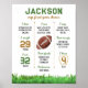 Nosso poster de aniversário de futebol é a forma perfeita de celebrar e documentar um aniversário especial. O design apresenta um tema desportivo único e memorável com espaço para o nome do seu filho, marcos especiais, realizações e memórias da sua vida até agora. É uma forma excelente de celebrar um aniversário de um marco e criar uma lembrança duradoura da ocasião especial. Este marco não é apenas uma decoração única, já que os convidados do partido terão a oportunidade de aprender mais sobre o primeiro ano do seu filho e a sua personalidade crescente.