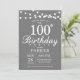 100º Aniversário Cinza de Convite e Branco