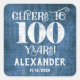 100.º aniversário de adesivos de etiquetas de favorecimento, com carinho de burlap, de linen azul rústica, com letras de quadro branco e personalizadas com nome e data abaixo.