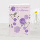 Cartão de Saudação de 100.º Aniversário com Flores Roxas Um cartão de saudação de aniversário floral bonito em roxo e rosa, com flores muito sutis no fundo
