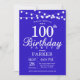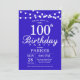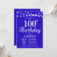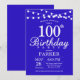 100º Convite de Aniversário com Luzes de Cordas. Fundo Azul Real. 13 15 16º 18º 20 21 rua 30 40º 50º 80 de 60º 70 de 100º, qualquer idade.