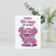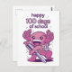 Design bonito com um axolotl vestindo uma mochila e segurando uma grande caneta com a citação "Feliz 100 dias de escola". Feliz 100º dia de escola ou jardim de infância.