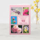 102º cartão de aniversário. Mande lindas flores para uma pessoa bonita. Um cartão de aniversário com um belo sentimento. Uma coleção de imagens enquadradas de flores em um fundo rosa.