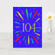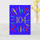 Um cartão de aniversário explosivo 104! Que maneira maravilhosa de enviar cartões de aniversários. O número 104 em amarelo brilhante com uma explosão de cores brilhantes e estrelas.