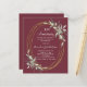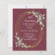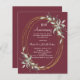Um monte, fundo burgundy. Decorado com verde e quadro oval ouro. Personalize e adicione um nome e detalhes. 1 folha = 1 convite impresso de borda a borda.