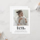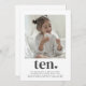 Um convite moderno de 10 de aniversário, com a sua própria fotografia e a palavra "dez", com um coração por baixo. Você também pode editar toda a cor e estilos do texto, além da cor do coração, se quiser. Basta clicar no botão 'Personalizar' -> 'Editar usando a ferramenta design'.