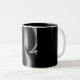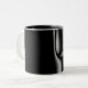 Um design abstrato em cobrir pretos e brancos na frente desta caneca.