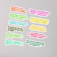 Mostre seu amor por sua incrível mãe com esses adoráveis adesivos de mensagem! Com citações de amor tocantes, esses adesivos são perfeitos para adicionar um toque pessoal a cartões, presentes, diários ou até laptops. Expresse sua gratidão de uma maneira divertida e moderna. Esses adesivos vibrantes e de alta qualidade são um presente atencioso e único para mães, ou para qualquer ocasião. Dê um tempero no seu dia a dia com esses adesivos de mensagem fofos e significativos!