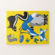 Um quebra-cabeça fácil (para adultos!) com amigos de animais da floresta em tons de azul e cinza em um fundo amarelo vibrante. Esta é uma quebra-cabeça divertida com peças de tamanho excessivo para crianças jovens aprendendo a viver com a forma mais comum de cegueira das cores. Eles podem brincar sem sentir que estão em desvantagem, e ao mesmo tempo fortalecer habilidades perspicazes para reconhecer forma e padrão.