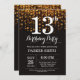 Convite de Aniversário de 13 com Luzes de Cordas Douradas com Dourado Plano de Fundo Glitter. Dourado Aniversário. Aniversário de criança. Convidar Menino ou Menina. 13 15 16º 18º 20 21rua 30 40º 50º 60º 80 de 70 100º, qualquer idade. Para mais personalização, clique no botão "Personalizar" e use nossa ferramenta de design para modificar este modelo.