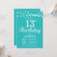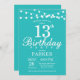 13 Aniversário com Luzes de Cordas. Teal Aqua Turquoise. Aniversário de criança. Convidar Menino ou Menina. 13 15 16º 18º 20 21rua 30 40º 50º 60º 80 de 70 100º, qualquer idade. Para mais personalização, clique no botão "Personalizar" e use nossa ferramenta de design para modificar este modelo.