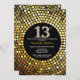 Convite de Aniversário de 13. Brilho preto e Dourado. Diamante Dourado.Festa de aniversário para crianças. Para a festa de bash do Boy ou Girl Bday.