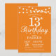 13 Aniversário com Luzes de Cordas. Fundo Laranja. Aniversário de criança. Menina ou Menina Convidam. 13 15 16º 18º 20 21rua 30 40º 50º 60º 80 de 70 100º, qualquer idade. Para mais personalização, clique no botão "Personalizar" e use nossa ferramenta de design para modificar este modelo.