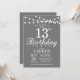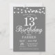 13 Birthday Invitation com luzes de cordas. Fundo Da Cinza.Aniversário de crianças. Convidam o Menina ou Menina de Dias. 13 15 16º 18º 20 21 rua 30 40º 50º 80 de 60º 70 de 100º, qualquer idade.