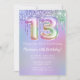 convite de aniversário roxo, cor-de-rosa, pinga convite de aniversário 13 para uma menina de 13 anos com moderno roteiro escrevendo e balões de folha divertida.