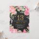 Convite de Aniversário para 13 Floral para Mulheres. Flor Botânica De Aquarela Dourada Glitter. Fundo Chalkboard. Flores Florais De Pêonias Rosa. Crianças, Lady Birthday. Para mais personalização, clique no botão "Personalizar" e use nossa ferramenta de design para modificar este modelo.