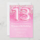13 cor-de-rosa Aniversário Convite Girly Pink Glitter convite de aniversário para uma menina de 10 anos com escrevendo moderno de escrita e balões de folha divertida.