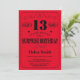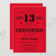 Surpresa 13 de Aniversário Invitation Black and Red Typography. Fundo preto e vermelho.Aniversário de crianças. Homens ou Mulheres Aniversário. Meninos Meninos ou Meninas Meninas Meninas Adolescentes Convidam. 13 15 16º 18º 20 21rua 30 40º 50º 60º 80 de 70 100º. Qualquer Idade.