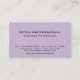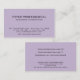 Este elegante cartão de visita mostra suas informações de uma forma clara e profissional usando uma fonte preta moderna em um fundo colorido com luz violeta. Este design é adequado para todos os fins. Os Cartões de visitas são uma ferramenta de marketing de excelente para os proprietários de empresas e pequenas empresas para promover seus serviços ou produtos em muitas áreas de atividade, como educação, consultoria, finanças, seguros, imóveis, saúde, beleza, malhação, estilo de vida, carro, TI, computadores e muito mais. Nessa cartão de visita moderna e elegante, o nome e as linhas de informações comerciais são acentuados por uma sutil sombra. Você pode escolher sua própria cor de fundo ou fonte e também pode alterar a cor da sombra personalizando o design com ferramentas de design Zazzles. Personalize o texto na parte traseira da placa para informar aos clientes e parceiros comerciais sobre seu serviço ou produtos ou exclua campos de texto de que você não precisa. Se este cartão de visita for destinado a uso privado, talvez você não queira fornecer muitas informações para proteger sua segurança. Nesse caso, você pode usar a parte frontal da placa para imprimir seu nome e informações de e-mail nela e escrever seu número de telefone na parte traseira da placa quando entregá-la. Mostre seu profissionalismo aos clientes e amigos e dê uma impressão duradoura escolhendo impressões profissionais de cartão de visita Zazzles.