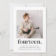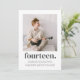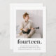 Um convite moderno para o Aniversário 14, com a sua própria fotografia e a palavra "catorze" por baixo. Você também pode editar todas as cores e estilos do texto - basta clicar no botão 'Personalizar' -> 'Editar usando a ferramenta design'.