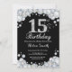 Convite de aniversário de 15. Fundo do Quadro do Diamante do Silver Rhinestone. Convidado Elegante Birthday Bash. Preto e Branco. Aniversário de criança. Aniversário da Garota. Aniversário. Para mais personalização, clique no botão "Personalizar" e use nossa ferramenta de design para modificar este modelo.