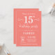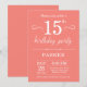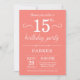 Convite de aniversário de 15 com fundo de coral. Aniversário de criança. Convidar Menino ou Menina. 13 15 16º 18º 20 21rua 30 40º 50º 60º 80 de 70 100º, qualquer idade. Para mais personalização, clique no botão "Personalizar" e use nossa ferramenta de design para modificar este modelo.