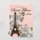 Estes belos convites em tons cor-de-pêssego macio e castanhos com a Torre Eiffel e o florescimento de cerejeira florescem são perfeitos para o período de primavera em Paris temem quinceanera doce quinze festas de aniversário. Esses convites podem ser personalizados com seu próprio texto na parte frontal e traseira deste cartão. Se precisar de ajuda para personalizar este cartão, envie um e-mail para chrissyh@chrissyhstudios.com. Ilustração digital © Chrissy H. Estúdios, LLC. Todos os direitos reservados.