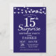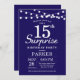 Surpresa 15 de Aniversário com Luzes de Cordas. Fundo Azul marinho. Aniversário de crianças. Convidar Menino ou Menina. 13 15 16º 18º 20 21rua 30 40º 50º 60º 80 de 70 100º, qualquer idade. Para mais personalização, clique no botão "Personalizar" e use nossa ferramenta de design para modificar este modelo.