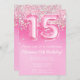15 cor-de-rosa Aniversário Convite Girly Pink Glitter convite de aniversário para uma menina de 15 anos com escrevendo moderno de escrita e balões de folha divertida.