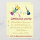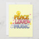 Décimo sexto convite de aniversário com imagem de um violão e a palavra rock em letras coloridas, você pode mudar tudo no convite para se adequar ao seu partido. As costas têm paz, amor, música que também pode ser mudada.