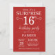 Surpresa 16º Convite de Aniversário com Fundo Vermelho.Aniversário de crianças. Convidam o Menino ou Menina Bday. 13 15 16º 18º 20 21 rua 30 40º 50º 80 de 60º 70 de 100º, qualquer idade.