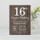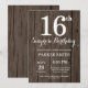 Rustic Surprise 16º Convite de Aniversário. Fundo Da Madeira Rústica. Vintage Retro Birthday.Aniversário de crianças. Convidam o Menino ou Menina Bday. 13 15 16º 18º 20 21 rua 30 40º 50º 80 de 60º 70 de 100º, qualquer idade.