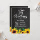 16.º Convite de Aniversário de Girassol. Flores Florais e Fundo Chalkboard. Retro de Vintagem do País. Crianças, Aniversário. 15 de 12 de 16º 20 de 18º de 13 21rua 30 de 40º de 50º de 60º de 70 90 de 100º de qualquer idade. Digital Imprimível. Para mais personalização, clique no botão "Personalizar" e use nossa ferramenta de design para modificar este modelo.