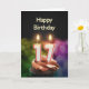 Um bolo de aniversário com velas. As velas são compostas pelo número 17, para um aniversário de 17 anos. Um cartão de aniversário adequado para todos.