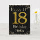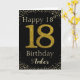 Parabéns com a simulação de brilho de ouro número 18 em preto sólido e emoldurado por diamantes falsos e rochas. Feliz aniversário e nome dos destinatários em letra esbranquiçada. Personalizar com nome ou mensagem.