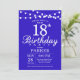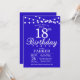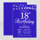 18º Convite de Aniversário com Luzes de Cordas. Fundo Azul Real. 13 15 16º 18º 20 21rua 30 40º 50º 60º 80 de 70 100º, qualquer idade. Para mais personalização, clique no botão "Personalizar" e use nossa ferramenta de design para modificar este modelo.