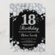 18º Convite de Aniversário. Fundo do Quadro de Diamantes do Silver Rhinestone. Convite para o Elegante Birthday Bash.Preto & Branco. Aniversário Adulto. Aniversário das mulheres. Homens Aniversário.