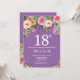 18.º Aniversário do Purple Floral Convite para Mulheres. Flor Floral de Água. Fundo de Violet Lavanda Lilac Roxo. Rosa, Amarelo, Laranja, Flor Roxo. Aniversário Adulto. 13 15 16º 18º 20 21 rua 30 40º 50º 80 de 60º 70 de 100º, qualquer idade. Para mais personalização, clique no botão "Personalizar" e use a ferramenta design para modificar este modelo.