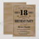 18º Convite de Aniversário. Tipografia. 18 anos. Aniversário Adulto. Fundo Da Madeira Rústica. Homens ou Mulheres Aniversário. Meninos Meninos ou Meninas Meninas Meninas Adolescentes Convidam. 13 15 16º 18º 20 21rua 30 40º 50º 60º 80 de 70 100º. Qualquer Idade.