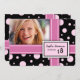 18o Convites feitos sob encomenda da foto da festa de aniversário com o divertimento e teste padrão cor-de-rosa e preto brilhante moderno do papel de embrulho das bolinhas, inteiramente customizáveis com seus detalhes da foto e da festa de aniversário, um convite original e à moda para a festa de aniversário de uma menina.