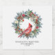 Elegant watercolor red cardinal framed by a classic winter pine wreath. Red and white flowers, berries and pinecones add to the greenery. Three lines of text let you customize your party supplies.