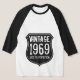 Vintage 1969 envelheceu à perfeição, camisa de cinza escura para homens. Sinal de estrada design. O símbolo do escudo estilo Grunge com data de nascimento. Ano personalizável do número estabelecido. Legal ideia de presente de aniversário para o pai lendário, marido, tio, avô, irmão etc. Cores pretas manchas com letras de aparência aflitivas. Humor de idade. Nascer em 1969. crachá de carro original clássico.