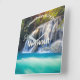 Este relógio de parede mostra a Escritura de bíblia de Salónica de 1 em uma fonte impressão única com letras brancas e pretas colocadas sobre uma foto de uma cascata com bela água azul com citação de bíblia. Este relógio é feito para qualquer parede e impresso com um processo AcryliPrint®HD mede 10,75" x 10,75" e é feito de acrílico de grau A. A bateria é acionada com uma bateria AA apenas para uso interno, não recomendada para uso no exterior.