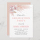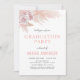 Personalize este convite para Festas de formatura Boho Blush Pink, White, Modern e Elegante Na moda Watercolor Primavera 2023 em fundo branco com sua mensagem e detalhes. Este convite chico inclui rosa flores e capim-de-pampas moderno com tipografia de guiões bonitinha e elegante para o Segundo grau especial ou Formando de faculdade.