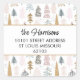 Um padrão de árvores de Natal caprichosas ilustradas em cores pastéis, nome manuscrito moderno e tipografia de endereço com uma simples borda dourada são apresentados neste adesivo quadrado da moda. Economize dinheiro com vinte adesivos de 3,8 cm para etiquetas de endereço de retorno de envelope ou seis adesivos de 7,6 cm para pacotes. Melhor valor... a compra mínima é apenas uma folha. Altere facilmente o nome e o texto para torná-lo seu usando o modelo fornecido. Se precisar de mais espaço, use letras minúsculas. Veja "Sobre Este Produto" para mais informações.