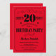 20 Aniversário Convite para a Tipografia Negra e Vermelha. Fundo preto e vermelho. Aniversário Adulto. Homens ou Mulheres Aniversário. Meninos Meninos ou Meninas Meninas Meninas Adolescentes Convidam. 13 15 16º 18º 20 21rua 30 40º 50º 60º 80 de 70 100º. Qualquer Idade.