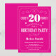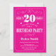 20 Aniversário Convite Rosa Quente e Branco
