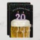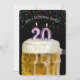 Vela número 20 em caneca de cerveja com confete colorido em preto para convite para festa de aniversário 20.